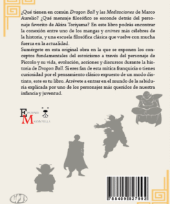 Sumérgete en esta original obra en la que se exponen los conceptos fundamentales del estoicismo a través del personaje de Piccolo y su vida, evolución, acciones y discursos durante la historia de Dragon Ball. Si eres fan de esta mítica franquicia o tienes curiosidad por el pensamiento clásico expuesto de un modo distinto, este es tu libro. Atrévete a entrar en el mundo de la sabiduría explicada por uno de los personajes más queridos de nuestra infancia y juventud.